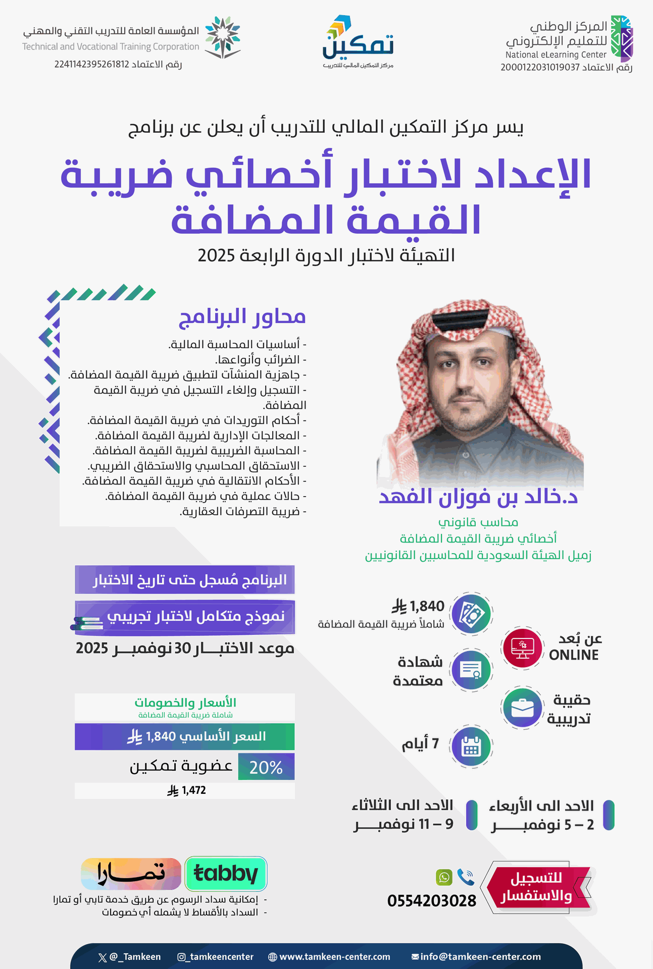 الإعداد لاختبار أخصائي ضريبة القيمة المضافة-الدورة الرابعة 2025م